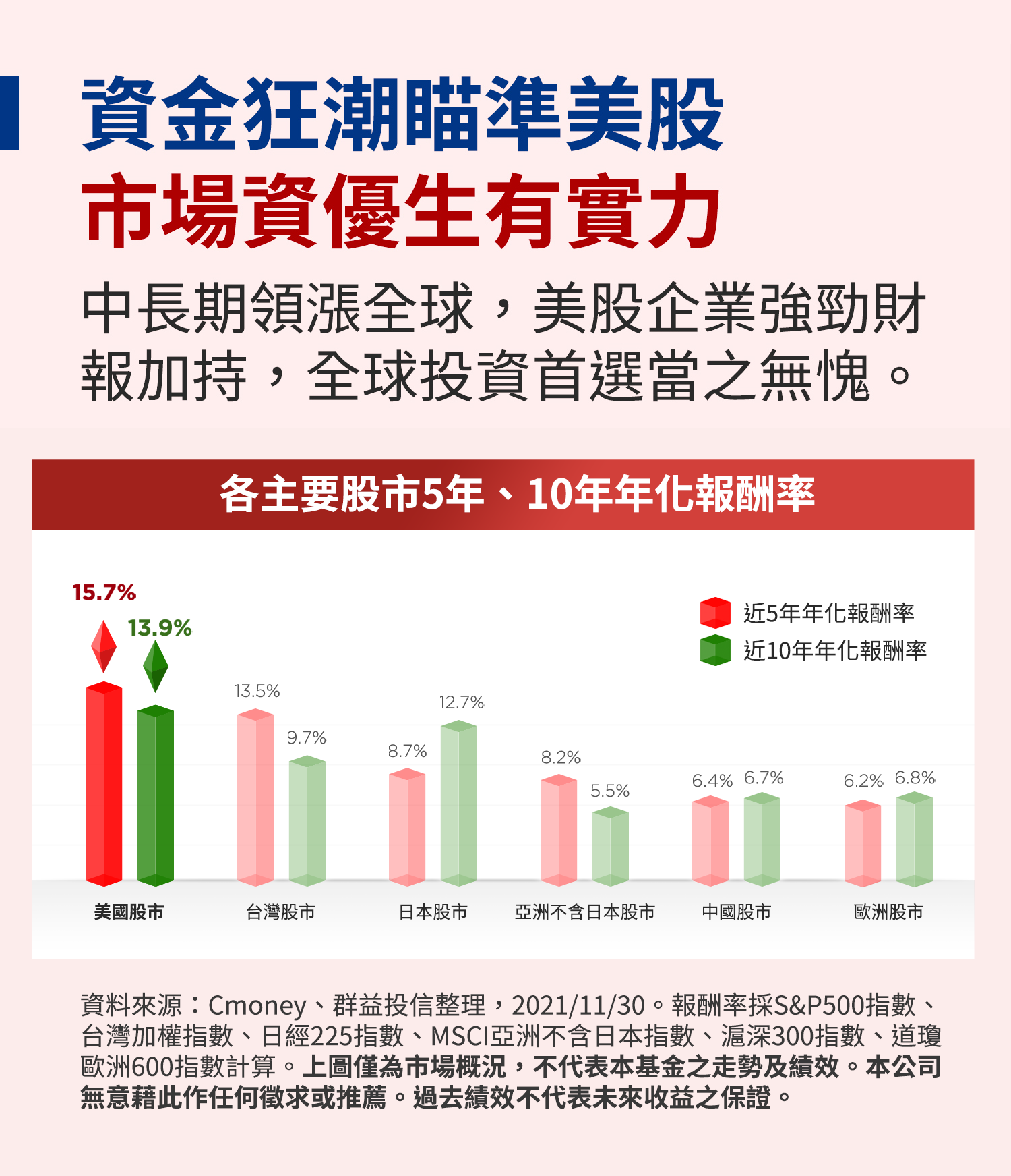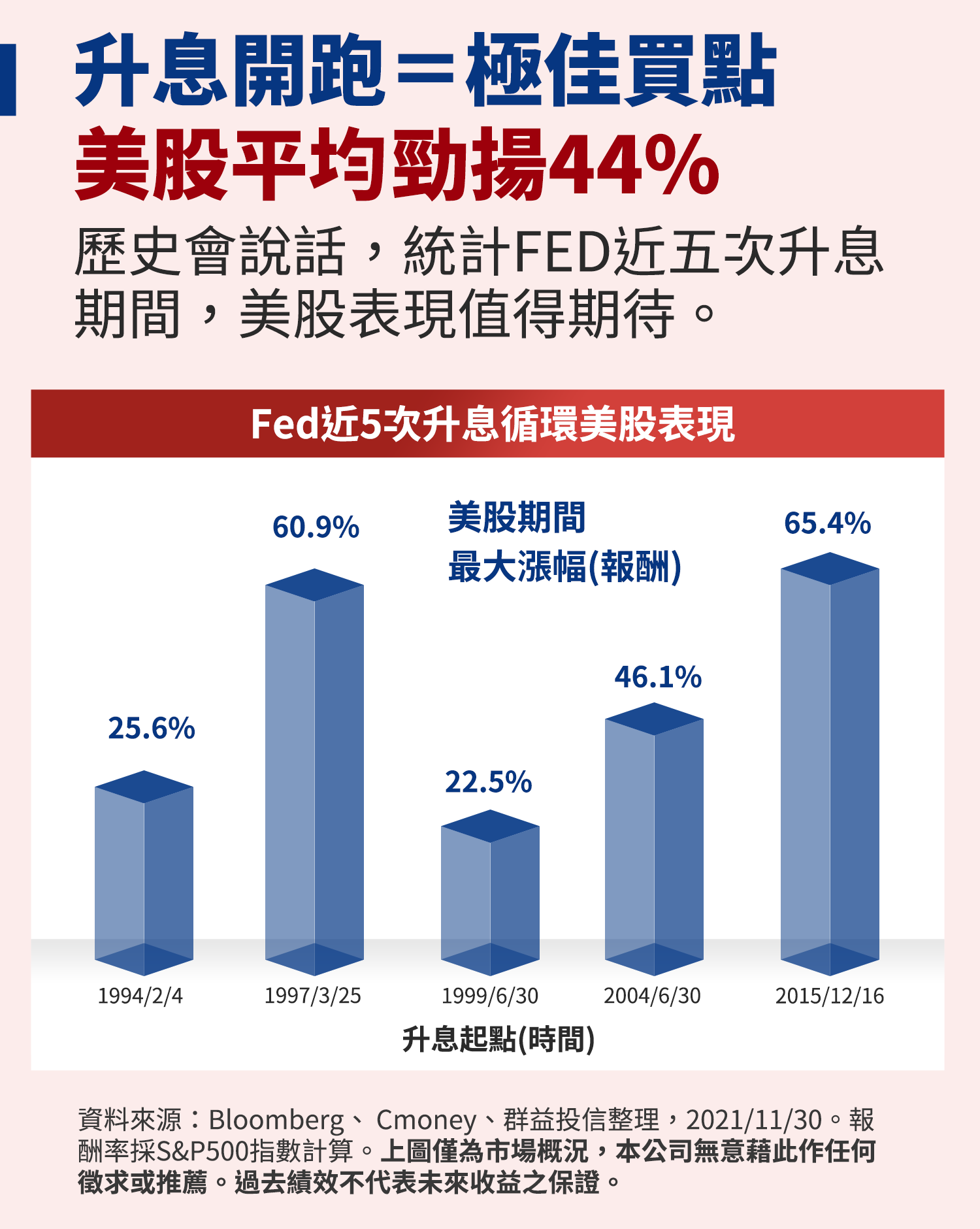 而於最新2021第三季的財報公布,更有82%的企業獲利繳出超預期的成績單,也說明有實質的營收表現支撐基本面。惟投資人須注意短期內聯準會的升息動向,其所造成的市場震盪反而是你進場建倉的良好時機,透過「群益日日扣」設定逢低加碼,後續反彈能更快收到成效!