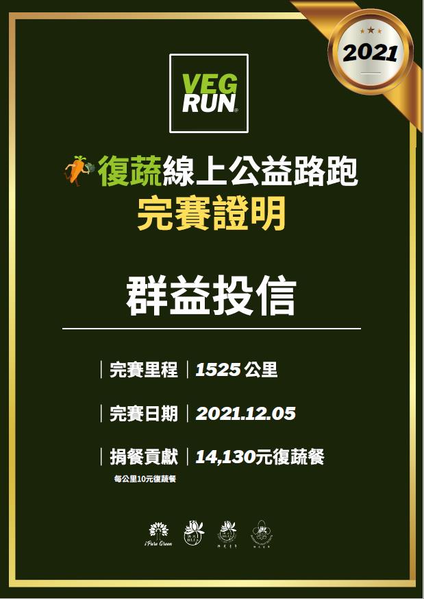 ■2021年群益投信參與「全球復蔬線上公益路跑」完賽證明