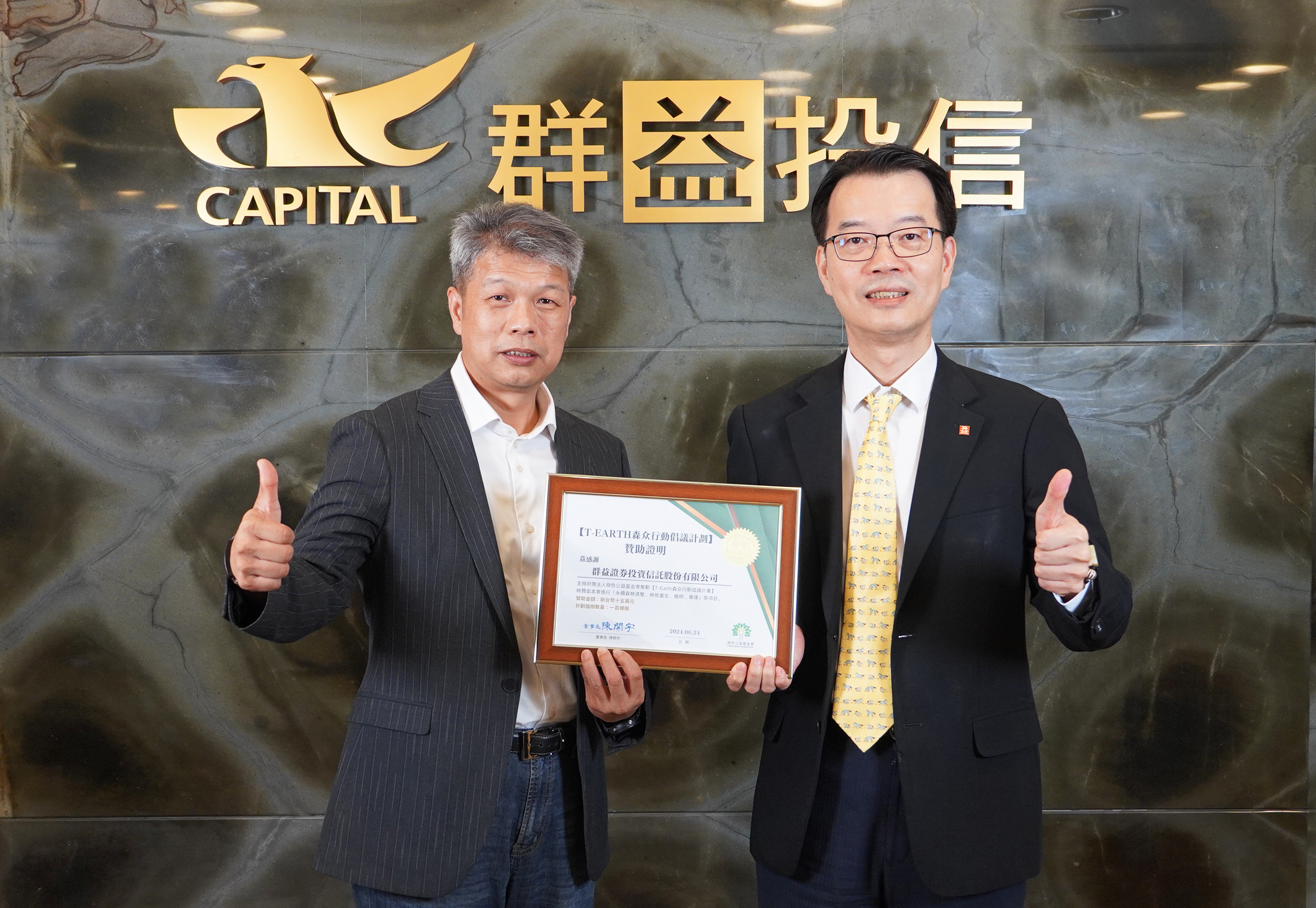群益投信長年落實永續愛地球行動,在公司運作上力行節能減碳、資源再利用,也與公益團體合作,積極推動海洋保護與植樹造林行動,群益投信與綠色公益基金會合作,共同推動「T-EARTH 森众計劃」森林復育行動在今年邁入第2年,該計畫包括林地清整、重生、植樹與養護等項目,並配合生物多樣性及改善土地管理,以實際行動共同對抗暖化。