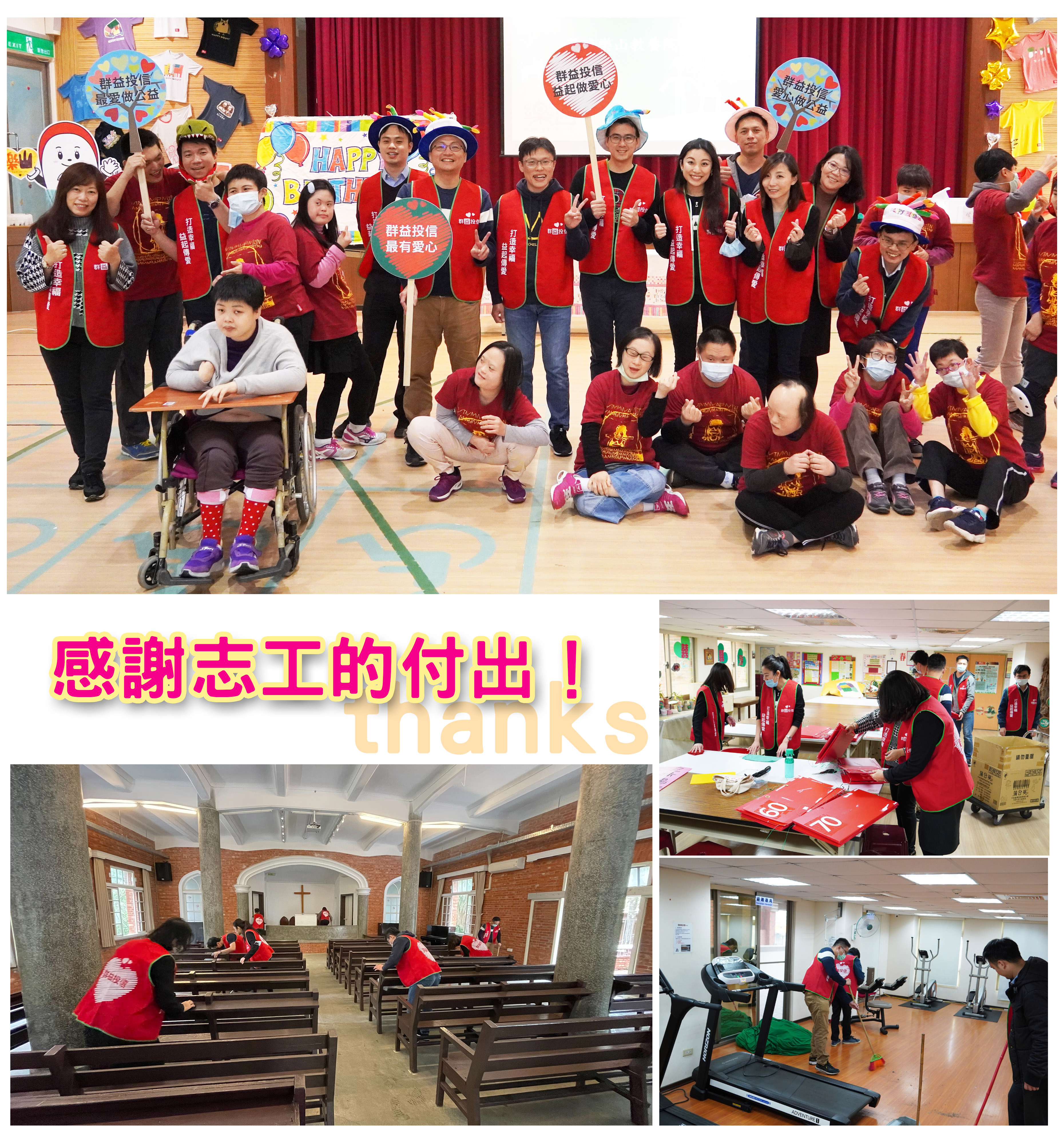 2022年因為疫情嚴峻的關係,為保護院生及志工的健康,停辦志工服務,終於在12月份疫情稍微趨緩,群益樂山志工再次出團,任務是幫忙布置院生耶誕晚會會場,為了保護院生的感染風險,還是暫不接觸,但透過庶務工作,讓院生可以得到一個歡樂的耶誕晚會,志工們也是非常的開心,順利的完成志工任務。
