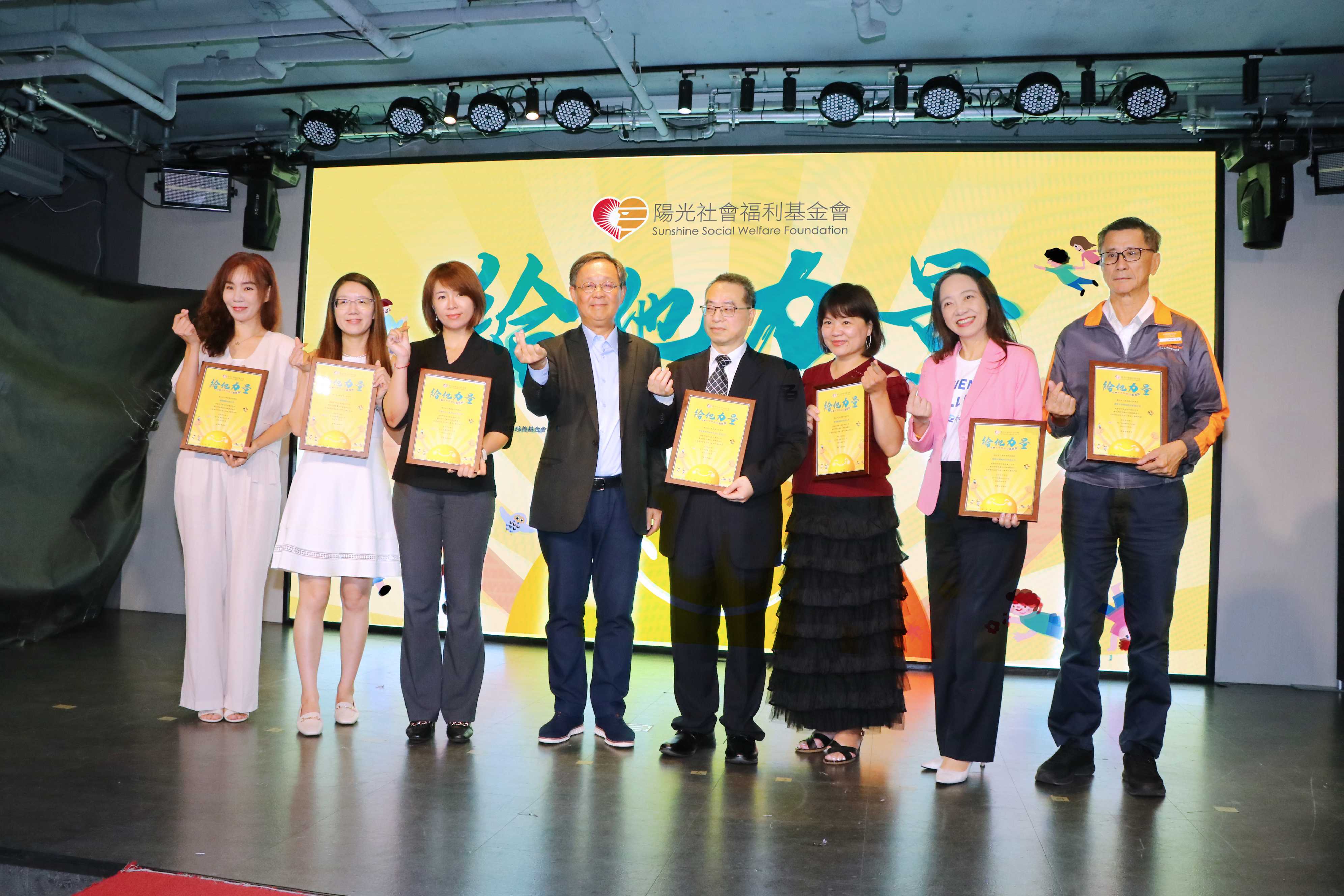 ■(右4)群益投信葉雲龍副總代表接受(中)陽光基金會董事長 劉陽明致贈感謝狀
