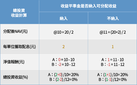 Q2. 釋例說明有無納入收益平準金對基金申贖及收益分配之差異及影響