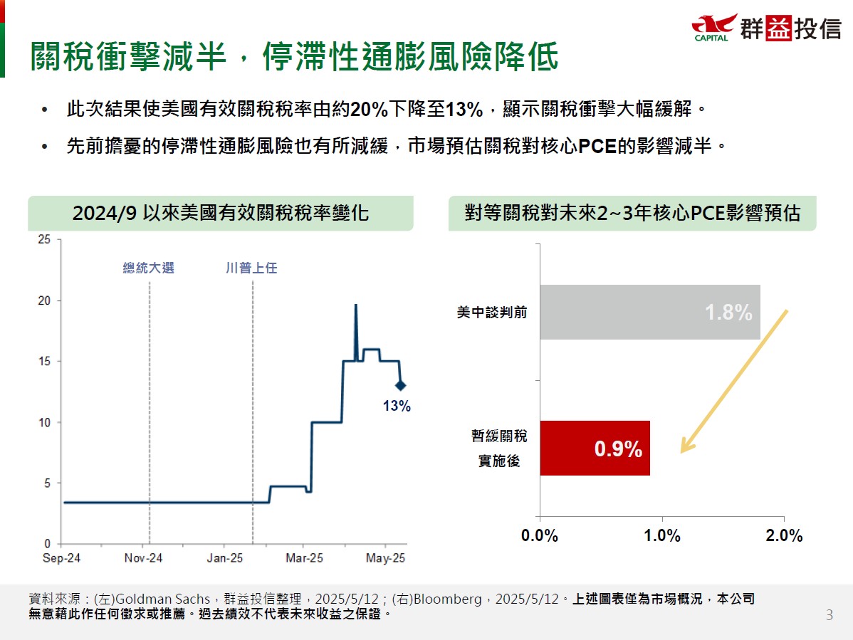 2. 關稅衝擊減半,通膨風險降低: