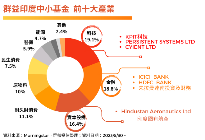 群益印度中小基金長年致力挖掘印度有潛力的投資趨勢,緊跟國際變局脈絡,不僅佈局印度穩健發展的金融產業,更搶先卡位印度科技、基建設備的成長爆發力,三大持股族群均受惠美印多項合作,可望隨指數繼續攻頂!