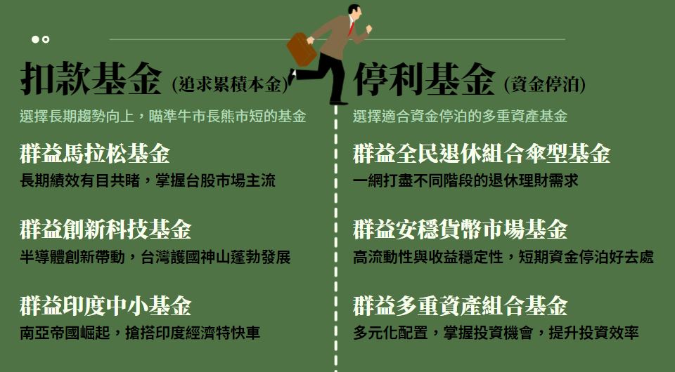 這項投資策略可在本金波動較穩定的同時,享受子基金的潛在高報酬率。您可以透過「群益i循環」協助執行母子基金投資計畫。