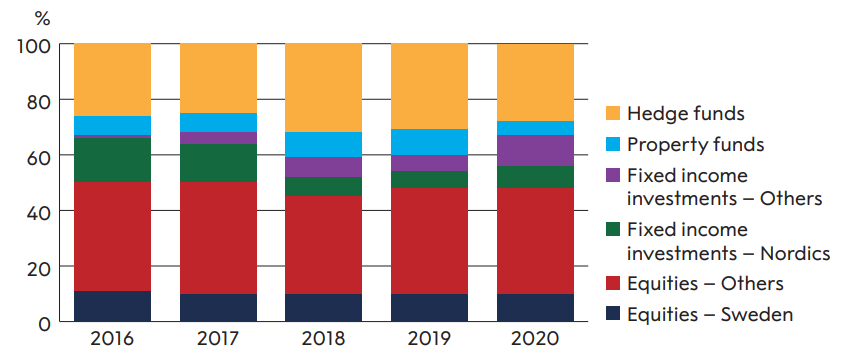 現在的諾貝爾基金多元分散投資在股票、固定收益、房地產基金、避險基金等。