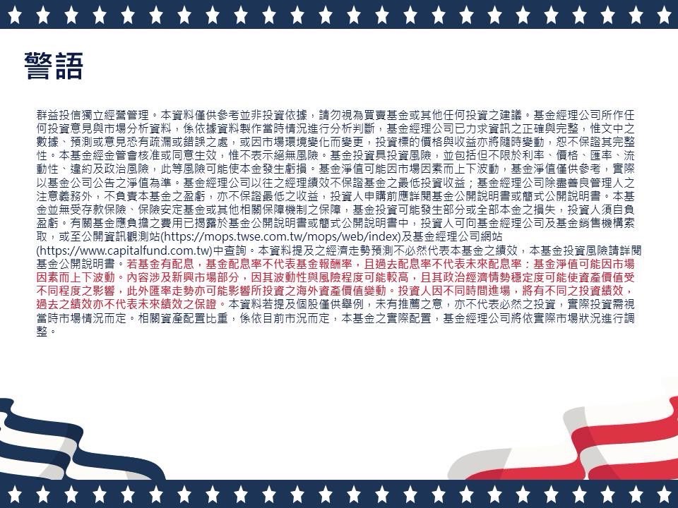(2) 考量美股評價再度來到相對高位,加上市場尚未有明顯題材方向,因此調整布局節奏,偏謹慎操作,並順應局勢擇機加碼金融、消費等防禦型類股配置。