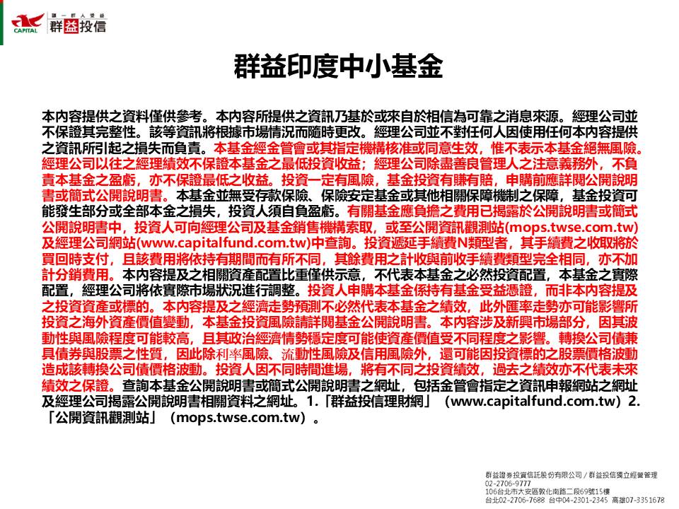 - 佈局印度,首選印度中小:印度經濟加速成長,中小型股股價動能強。