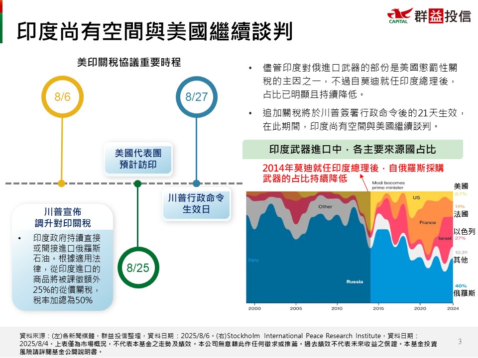 • 延伸閱讀:群益印美戰略多重資產基金(本基金有相當比重投資於非投資等級之高風險站券且基金之配息來源可能為本金)群益印度中小基金群益大印度基金