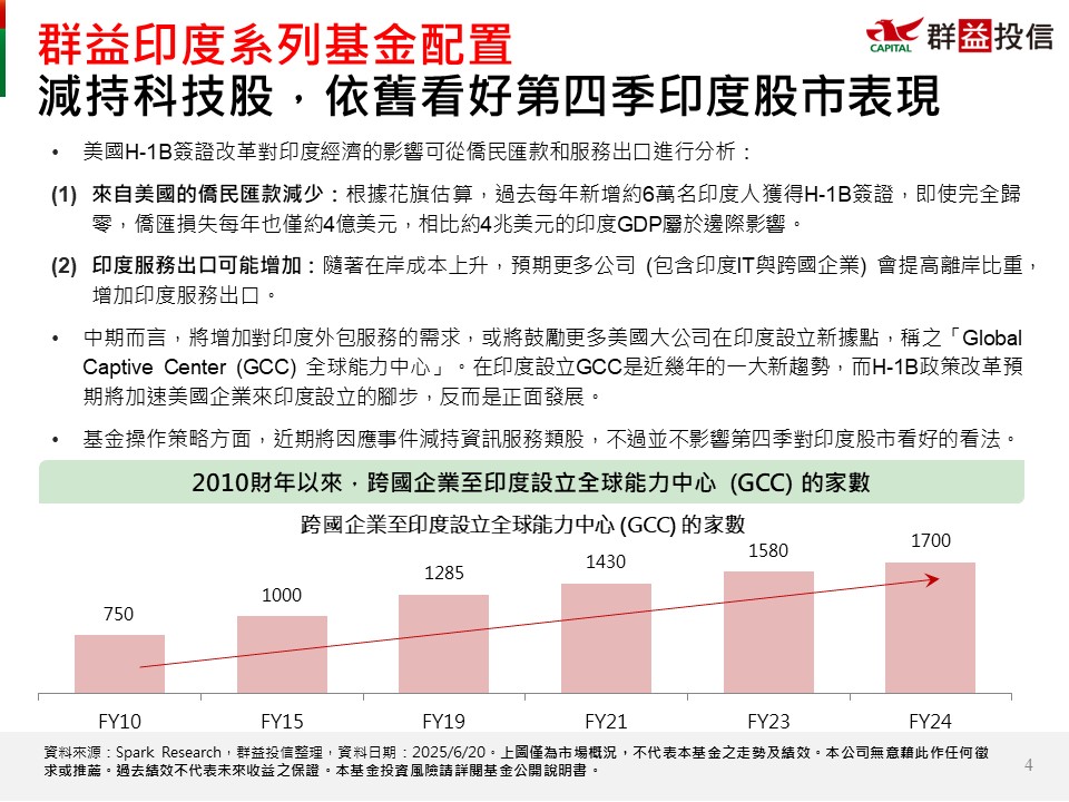 中期而言,將增加對印度外包服務的需求,或將鼓勵更多美國大公司在印度設立新據點,稱之「Global Captive Center (GCC) 全球能力中心」。在印度設立GCC是近幾年的一大新趨勢,而H-1B政策改革預期將加速美國企業來印度設立的腳步,反而是正面發展。