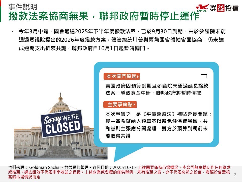 【群益美國投資放大鏡】美國政府關門考古題又來了,投資人該如何接招?