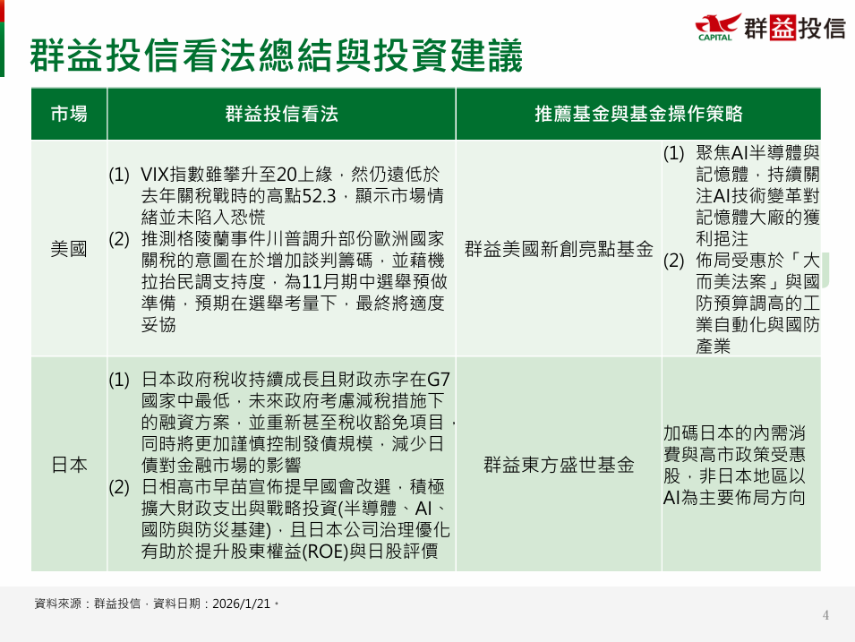 【群益美國投資放大鏡】格陵蘭事件與日債拋售市場事件,群益投信看法與投資建議