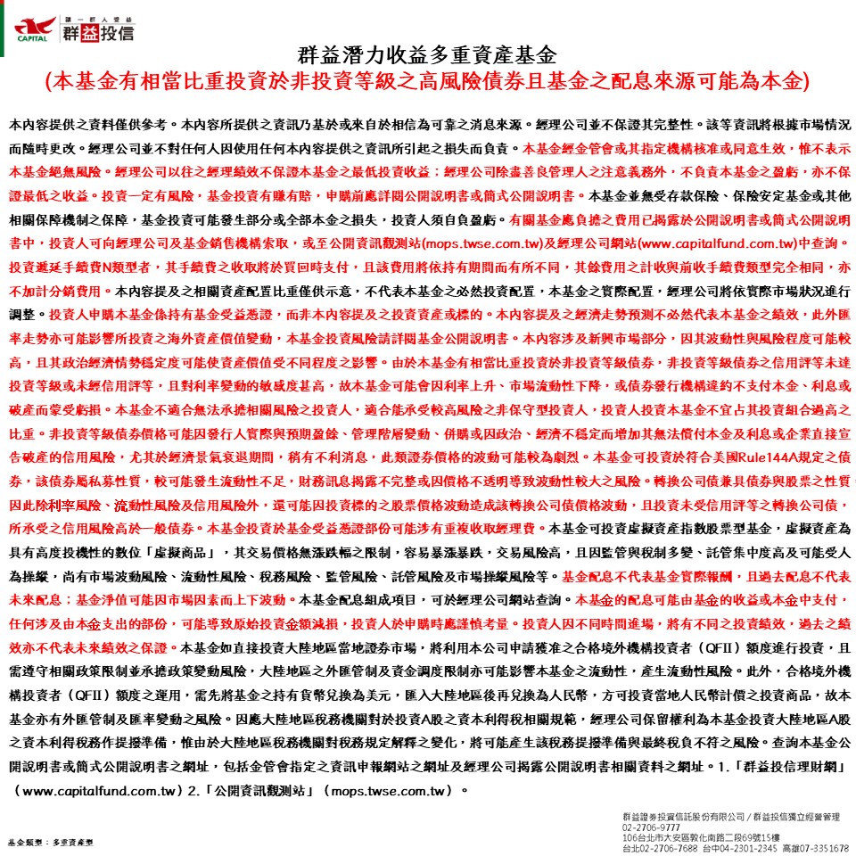 群益潛力收益多重資產基金(本基金有相當比重投資於非投資等級之高風險債券且基金之配息來源可能為本金)因應措施:
