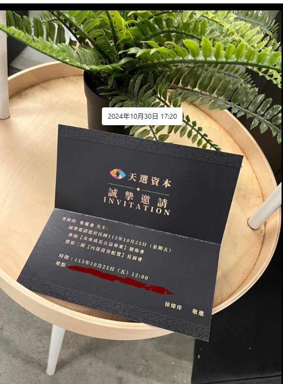 近日接獲投資人反應,發現坊間有不明人士假冒本公司經理人「徐煒庠」之名義及肖像,於來路不明之LINE群組中,發表投資資訊及進行詐騙行為。